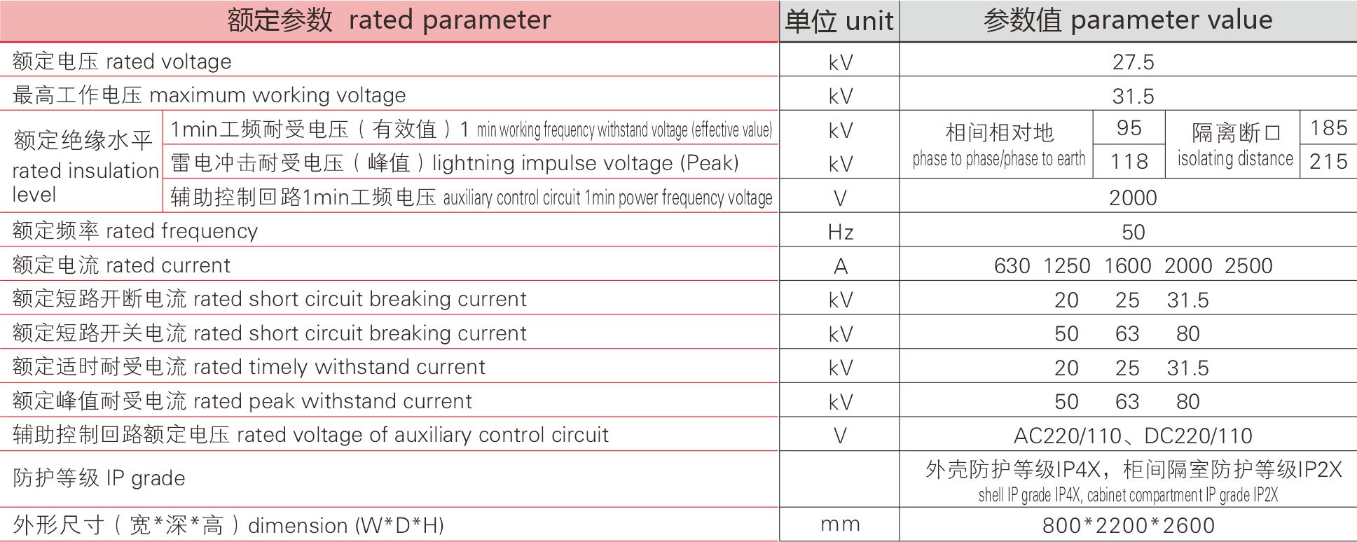CKN1-27.5金屬封閉開關設備是我公(gōng)司專為(wèi)電(diàn)氣化鐵路機車(chē)牽引電(diàn)力系統研發的全新(xīn)産(chǎn)品。其适用(yòng)于單相單極50Hz電(diàn)氣化鐵道供電(diàn)系統,用(yòng)以接受和分(fēn)配電(diàn)能(néng),并對電(diàn)路實行控制和保護。可(kě)在工(gōng)作(zuò)電(diàn)流範圍内進行頻繁的操作(zuò)或多(duō)次開斷短路電(diàn)流,适用(yòng)于重合閘操作(zuò)。産(chǎn)品操作(zuò)可(kě)靠性高,使用(yòng)壽命長(cháng);與常規開關櫃相比,在經濟性、适用(yòng)性、可(kě)靠性等方面具(jù)有(yǒu)明顯的優勢。 本産(chǎn)品滿足GB3906、GB1984、GB/T 28428、TB/T2803等标準要求,元件布置合理(lǐ)、方案齊全可(kě)靈活擴展,操作(zuò)可(kě)靠安(ān)全,現場安(ān)裝(zhuāng)方便、簡單,是先進的元器件與制造技(jì )術相結合的新(xīn)型配電(diàn)設備。